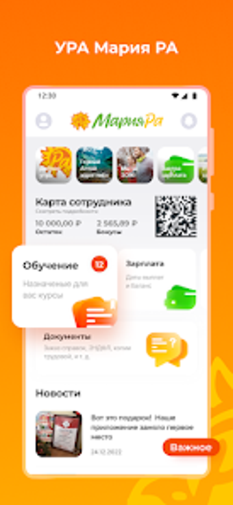УРА Мария-РАは、マルチプロファイル持株会社の従業員向けに開発されたAndroidアプリです。このアプリは、従業員が煩雑な手続きなしで会社のサービスに迅速かつ簡単にアクセスできるように設計されています。このアプリは、アルタイ地方、アルタイ共和国、ノヴォシビルスク州、トムスク州、ケメロヴォ州を含む、会社が存在するどの地域の従業員でも利用できます。